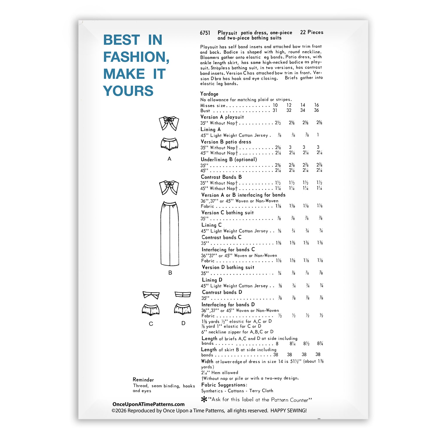 This pattern embodies timeless vintage swim and patio fashion, making it perfect for collectors, vintage sewing enthusiasts, and those seeking authentic retro silhouettes with Vogue’s signature attention to style and fit.