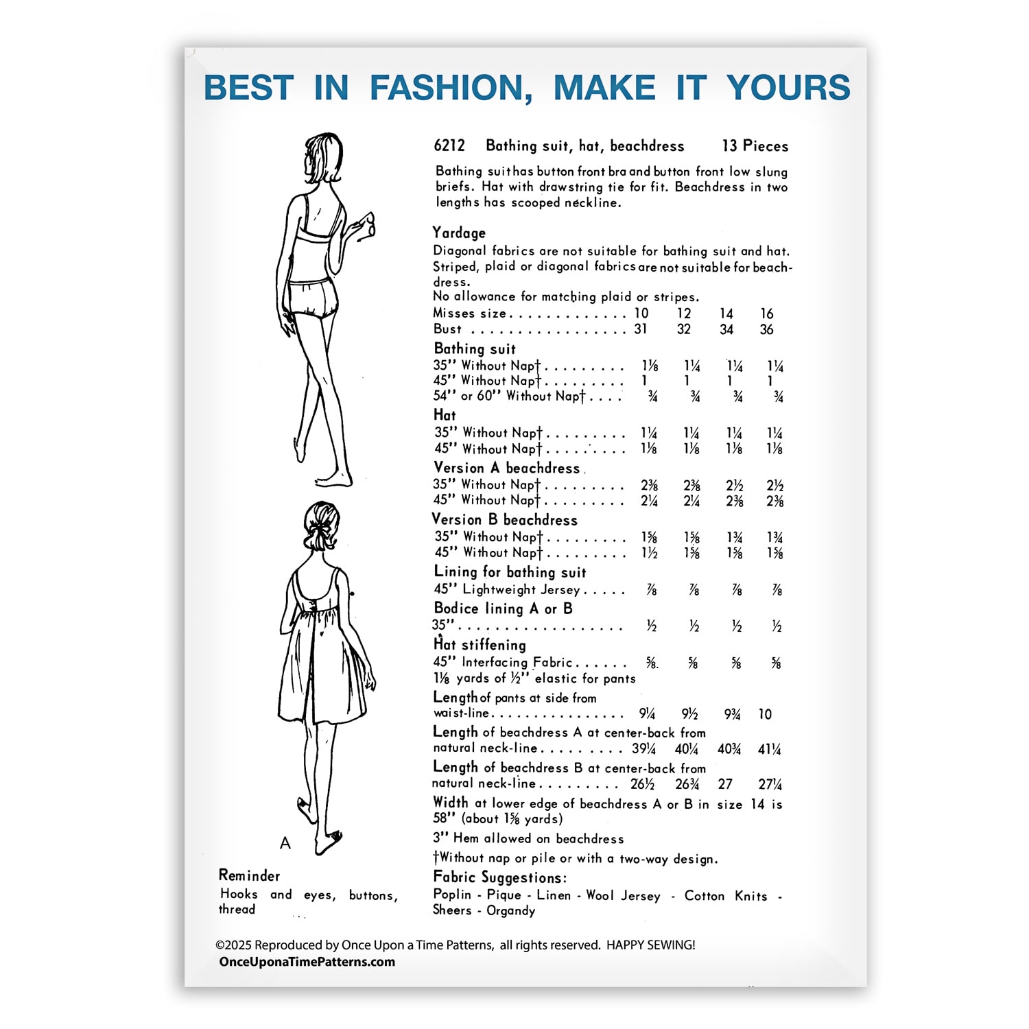 Size Chart – Vogue 6212 Vintage Bathing Suit Hat Beach dress Coverup